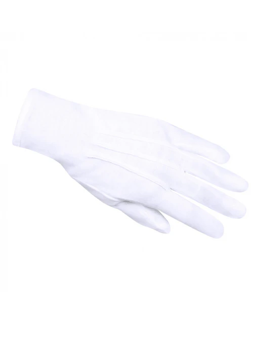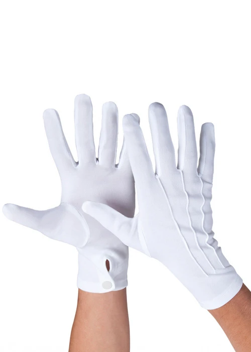 A great value accessory for a wide range of costumes, these adult mens size white wrist length gloves feature seams on the back of the hands and a popper fastening.