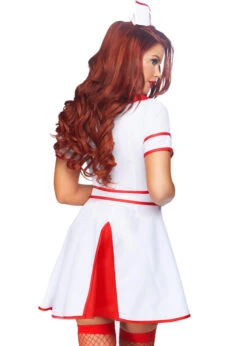 Adult size ladies cute sexy nurse uniform Fever sexy nurse fancy dress costume, includes a short white zip up the front dress and a matching fabric hat.