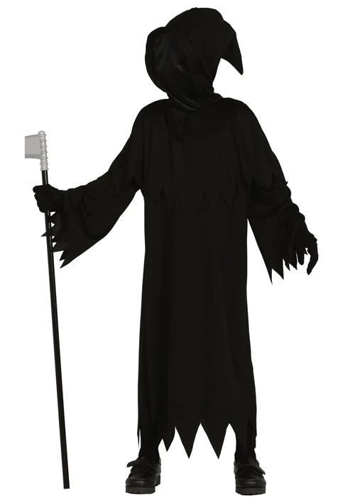 A great value boys Halloween outfit, this grim reaper death costume includes a long black tunic and half cape with hood.