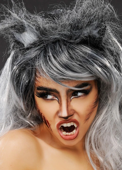 Plush faux fur animal fancy dress grey wolf ears on a headband.