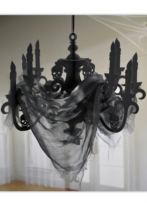 This incredible large black gothic candelabra decoration features black gauze fabric and is an ideal decoration for your Halloween party!