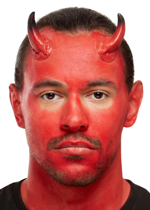 This fantastic devil make-up kit is perfect for Halloween, this set includes a pair of red and back latex prosthetic stick on devil horns, red aqua make-up, black aqua make-up and applicator.