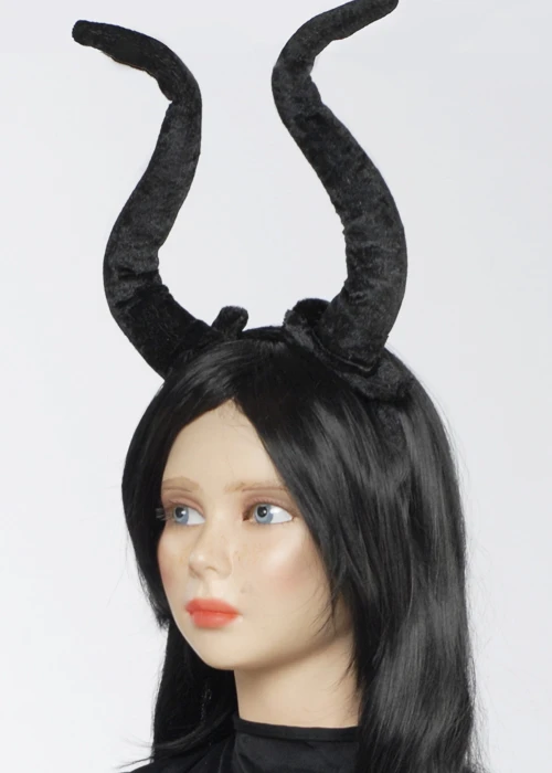 Our amazing childrens size girls long flexible black demon horns on headband are a perfect way to enhance your Maleficent fancy dress costume.