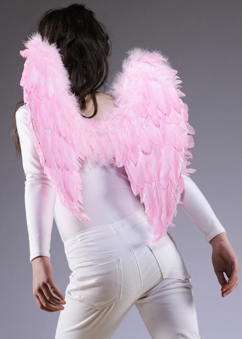 A beautiful set of kids pale pink fancy dress feather angel wings! Measures 50cm x 50cm. Supplied with elastic straps.