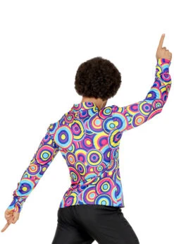 Adult male size 1970s disco music icons Abba style red super trooper fancy dress costum, includes a long sleeved white and red seventies shirt with a sequin trim and a pair of matching flared trousers.