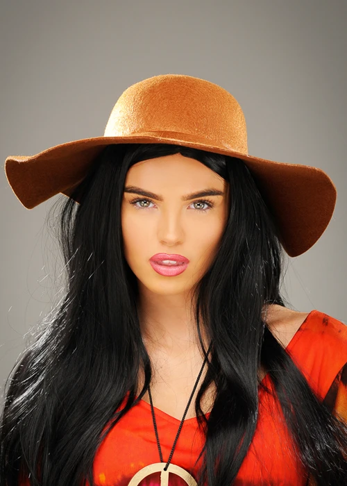 Adult ladies size 1970s hippy flower power fancy dress accessory large floppy brown hat.