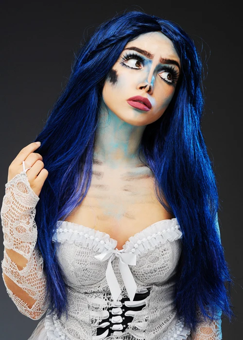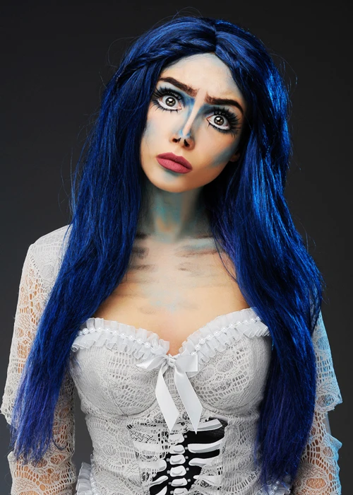 A great quality wig that is perfect for a Corpse Bride inspired look, this rich dark blue long straight wig with small twist details comes supplied on an elasticated net. Ideal for Halloween!